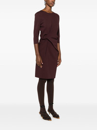 twist-detail midi dress Highlights - Burgundy - Cady texture - Asymmetric design - Twist detailing - Dart detailing - Round neck - Three-quarter length sleeves - Concealed rear hook and zip fastening - Straight hem - Mid-length - Unlined Made in France Composition Viscose 78%, Polyamide 16%, Elastane 6% SIZE & FIT Model measurements Height 5 ft 10 in(1.77 m) Bust/Chest 29.92 in(76 cm) Hips 34.25 in(87 cm) Waist 23.62 in(60 cm) FittingInformation Designed for a slim fit that sits just away from the body offering a close yet comfortable fit Made from a midweight stretch fabric, this piece offers elasticity and flexibility when worn This piece fits true to size – take your usual size