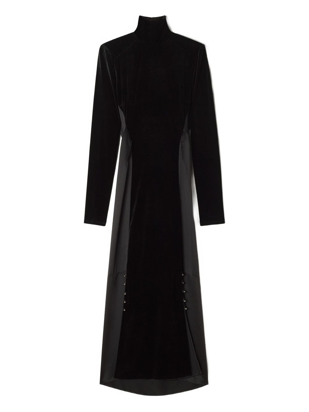 velvet high-neck midi dress Highlights - Black - Velvet bodice - High neck - Long sleeves - Open back - Stud embellishments Made in Italy Composition Viscose 78%, Silk 22% Washing instructions Read Manufacturer Guidelines