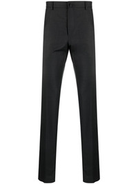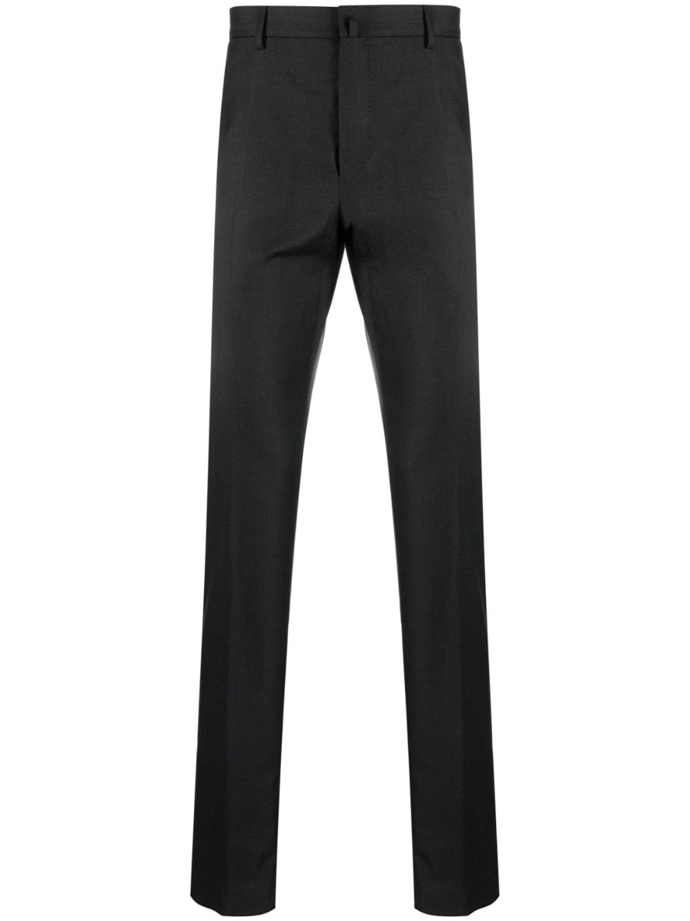 straight-leg tailored trousers Lanvin showcases its sleek aesthetic with these virgin wool trousers, rendered in classic anthracite grey and cut to an elongating slim leg silhouette. Highlights - Anthracite grey - Virgin wool - Tailored cut - Mid-rise - Concealed front fastening - Slip pockets to the sides - Two rear welt pockets - Slim cut Made in Italy Composition Lining: Cotton 100%, Viscose 100% Outer: Virgin Wool 100%, Buffalo Horn 100% SIZE & FIT Model measurements Height 6 ft 1 in(1.86 m) Bust/Chest 37.79 in(96 cm) Hips 38.58 in(98 cm) Waist 33.85 in(86 cm) FittingInformation Designed for a slim tapered leg, offering a close fit that sits just away from the leg with a closer fit towards the ankle The unfinished hems allow for the length to be altered Made from a midweight non-stretch fabric This piece fits true to size – take your usual size Washing instructions Dry Clean Only