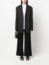 wide-leg tailored trousers Lanvin's inherent sophistication is made clear in these wide-leg trousers through their classic black tone and elegantly tailored silhouette. Highlights - Black - Cotton-wool blend - High waist - Belt loops - Concealed front fastening - Side pouch pockets - Two rear welt pockets - Wide leg Made in Italy Composition Outer: Buffalo Horn 100%, Wool 100% Lining: Cotton 100% SIZE & FIT Model measurements Height 5 ft 10 in(1.78 m) Bust/Chest 33.46 in(85 cm) Hips 36.22 in(92 cm) Waist 23.22 in(59 cm) FittingInformation Designed with a wide-leg cut, these trousers allow for a close fit at the waist and offer a loose and roomy fit over the leg Made from a midweight non-stretch fabric This piece fits true to size – take your usual size Washing instructions Dry Clean Only