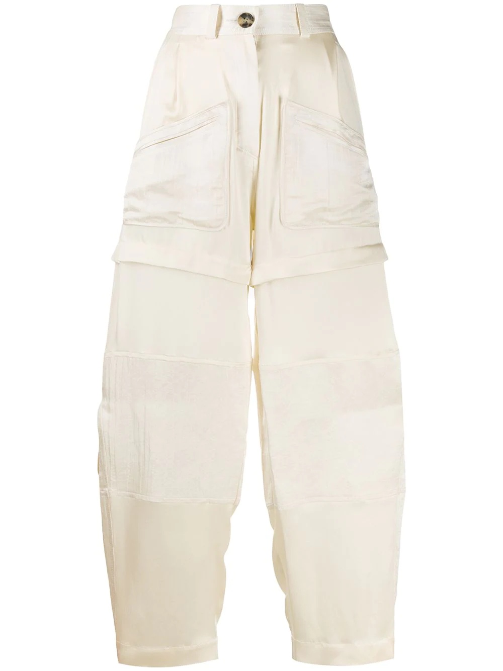 wide-leg trousers Of the opinion that bigger is better? Us too! That's why these cream silk and linen-blend wide-leg trousers from Lanvin are calling our name. Go big or go home. Featuring a mid rise, belt loops, a button and zip fly, a wide leg, a tapered leg, contrasting panels, a layered design and multiple pockets. Imported Composition Silk 100%, Linen/Flax 72%, Viscose 28% SIZE & FIT Model measurements Height 5 ft 9 in(1.76 m) Bust/Chest 31.49 in(80 cm) Hips 35.03 in(89 cm) Waist 23.62 in(60 cm) Washing instructions Dry Clean Only