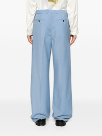 wide-leg wool trousers Highlights - Cornflower blue - Virgin wool - Tailored design - Pleat detailing - Wide leg - Mid-rise - Concealed front button, hook and zip fastening - Detachable waist belt - Belt loops - Two side slit pockets - Two rear button-fastening jetted pockets - Pressed crease - Straight hem Made in Italy Composition Outer: Virgin Wool 100%, Buffalo Horn 100%, zamac 90%, Brass 10% Lining: Viscose 100%, Cotton 100% SIZE & FIT Model measurements Height 6 ft 2 in(1.89 m) Bust/Chest 37.79 in(96 cm) Hips 37 in(94 cm) Waist 29.92 in(76 cm) FittingInformation Designed with a wide leg, offering a loose and roomy fit The adjustable tabs allow for fitted preferences Made from a midweight non-stretch fabric This piece fits true to size – take your usual size Washing instructions Dry Clean Only