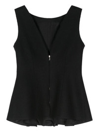 wool top Highlights - Black - Virgin wool - Felted finish - Concealed front zip fastening - V-neck - Sleeveless - Flared - Silk lining - Peplum hem Imported Composition Lining: Silk 100% Outer: Virgin Wool 100% Washing instructions Dry Clean Only