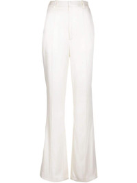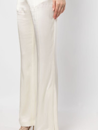 high-shine finish trousers Highlights - Cream white - High-shine finish - High waist - Belt loops - Concealed front fastening - Two rear welt pockets Made in United States Composition Acetate 61%, Viscose 39% SIZE & FIT Model measurements Height 5 ft 10 in(1.78 m) Bust/Chest 30.31 in(77 cm) Hips 34.64 in(88 cm) Waist 24.01 in(61 cm)