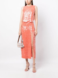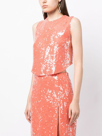 sequin-embellished sleeveless top Highlights - Carrot orange - Sequin embellishment - Sleeveless - Round neck - Curved hem - Cropped Imported Composition Body: Viscose 100% Lining: Polyester 100% SIZE & FIT Model measurements Height 5 ft 10 in(1.78 m) Bust/Chest 30.31 in(77 cm) Hips 34.64 in(88 cm) Waist 24.01 in(61 cm) FittingInformation Designed to be unstructured, offering a loose fit throughout Made from a midweight non-stretch fabric This piece fits true to size – take your usual size