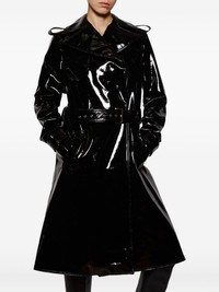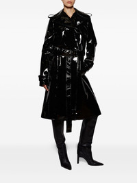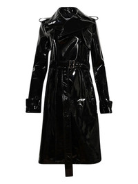 belted-patent trench coat Highlights - Black - Patent finish - Belted waist - Double-breasted closure - Epaulettes - Welt pockets Made in United States Composition Lining: Silk 92%, Elastane 8% Outer: Pig Leather 97%, Polyurethane 3% Washing instructions Read Manufacturer Guidelines