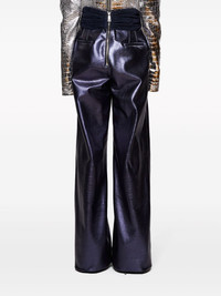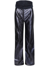 panelled high-shine trousers Highlights - Navy blue - High-shine finish - Panelled design - Gathered detailing - High-waisted - Exposed rear zip fastening - Wide leg - Two side slit pockets - Two rear welt pockets - Long length Imported Composition Fabric 100%
