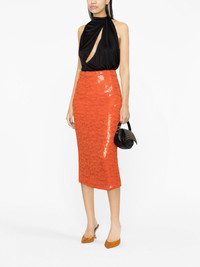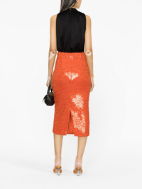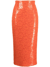 Sequin Lace Pencil Midi Skirt Orange