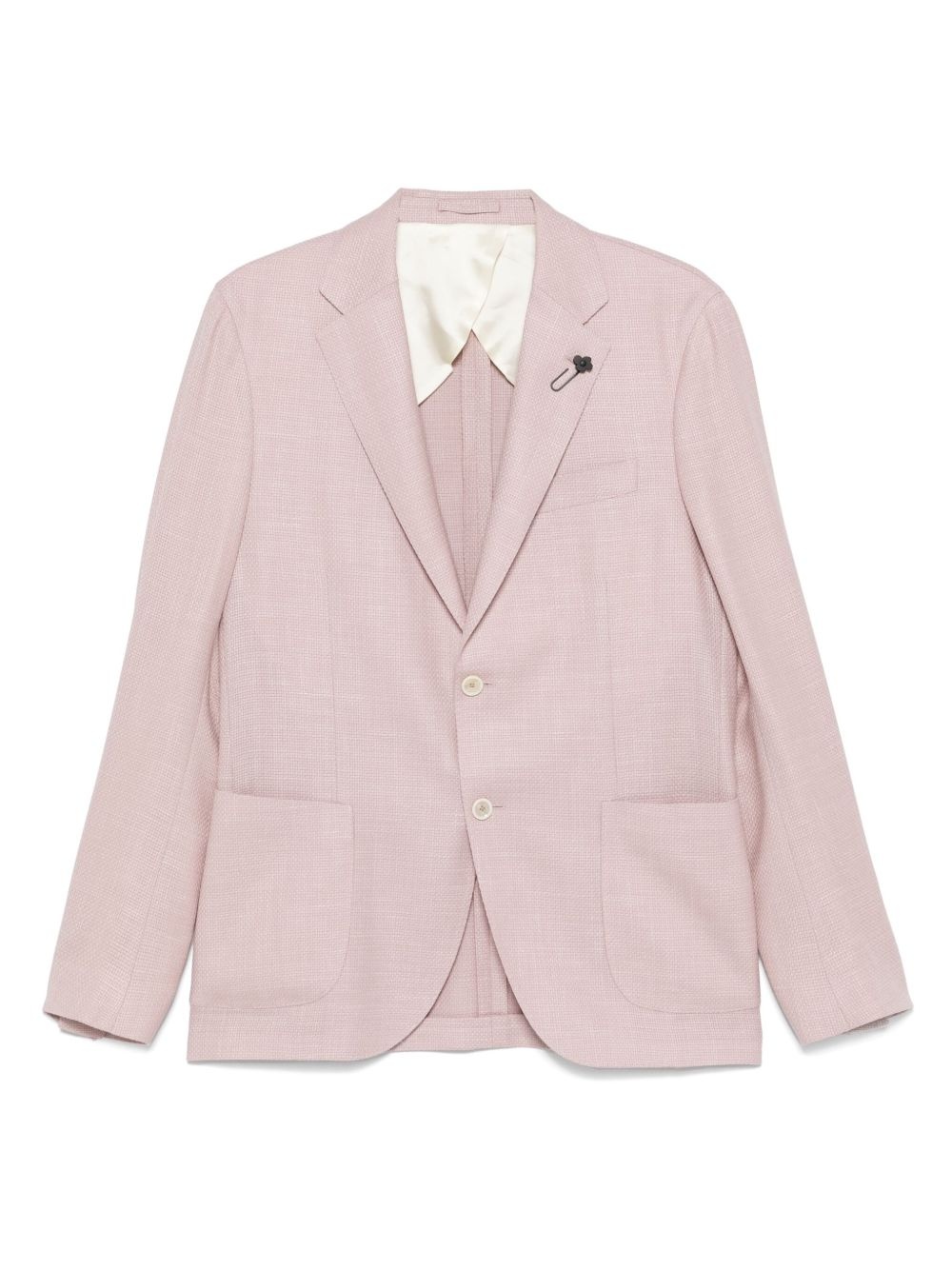 basketweave blazer Highlights - Powder pink - Front button fastening - Two front patch pockets - English rear vents - Shoulder pads Made in Italy Composition Wool 76%, Viscose 52%, Cupro 48%, Linen/Flax 12%, Silk 12% SIZE & FIT Model measurements Height 6 ft 2 in(1.88 m) Bust/Chest 37.4 in(95 cm) Hips 38.58 in(98 cm) Waist 31.1 in(79 cm) FittingInformation Designed for a slim fit, offering a comfortable fit that sits just away from the body The vented hem offers movement at the rear Made from a midweight non-stretch fabric