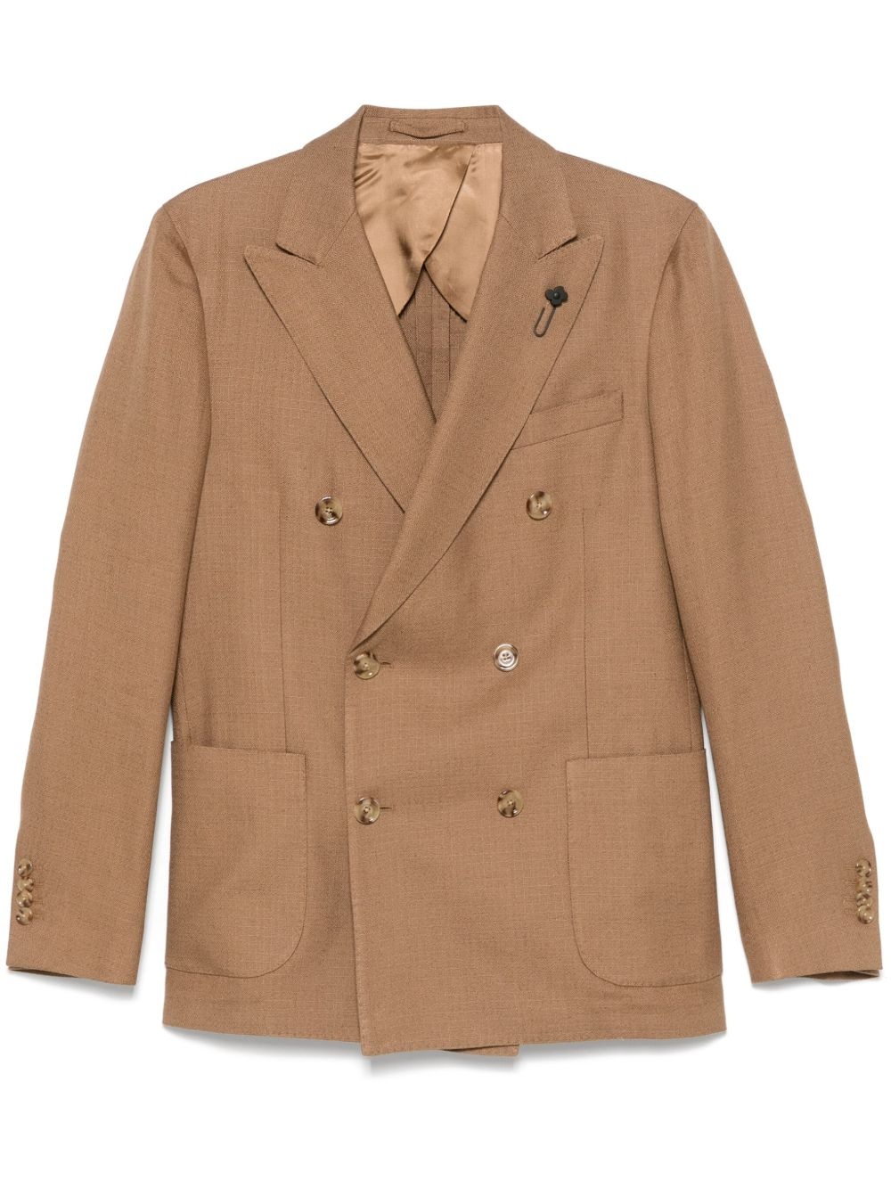 brooch-detail blazer Highlights - Sugar brown - Double-breasted button fastening - Internal pocket - English rear vents - Chest welt pocket Made in Italy Composition Outer: Cotton 66%, Linen/Flax 34% Lining: Viscose 52%, Cupro 48% SIZE & FIT Model measurements Height 6 ft 1 in(1.85 m) Bust/Chest 35.82 in(91 cm) Hips 37.79 in(96 cm) Waist 29.13 in(74 cm) FittingInformation Designed for a slim fit, offering a comfortable fit that sits just away from the body The vented hem offers movement at the rear Made from a midweight non-stretch fabric