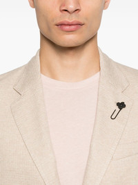 brooch-detail blazer Highlights - Sand beige - Front button fastening - Internal pocket - English rear vents - Chest welt pocket Made in Italy Composition Outer: Lyocell 78%, Polyamide 22% Lining: Polyester 100% SIZE & FIT Model measurements Height 6 ft 1 in(1.85 m) Bust/Chest 35.82 in(91 cm) Hips 37.79 in(96 cm) Waist 29.13 in(74 cm) FittingInformation Designed for a slim fit, offering a comfortable fit that sits just away from the body The vented hem offers movement at the rear Made from a midweight non-stretch fabric, this piece offers minimal elasticity when worn
