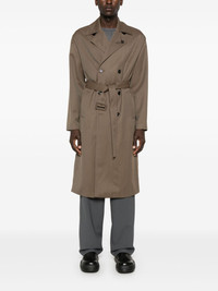 brooch-detail coat Highlights - Medium brown - Virgin wool - Twill weave - Notched lapels - Brooch detail - Long sleeves - Two side slit pockets - Buttoned central rear vent - Multiple internal slip pockets - Full lining - Straight hem - Double-breasted button fastening Made in Italy Composition Outer: Virgin Wool 100% Lining: Acetate 65%, Viscose 35% SIZE & FIT Model measurements Height 6 ft 2 in(1.87 m) Bust/Chest 36.41 in(92.5 cm) Hips 37 in(94 cm) Waist 29.52 in(75 cm) FittingInformation Designed to be unstructured, offering a loose fit throughout The belt offers adjustability for fitted preferences Made from a midweight non-stretch fabric This piece fits true to size – take your usual size