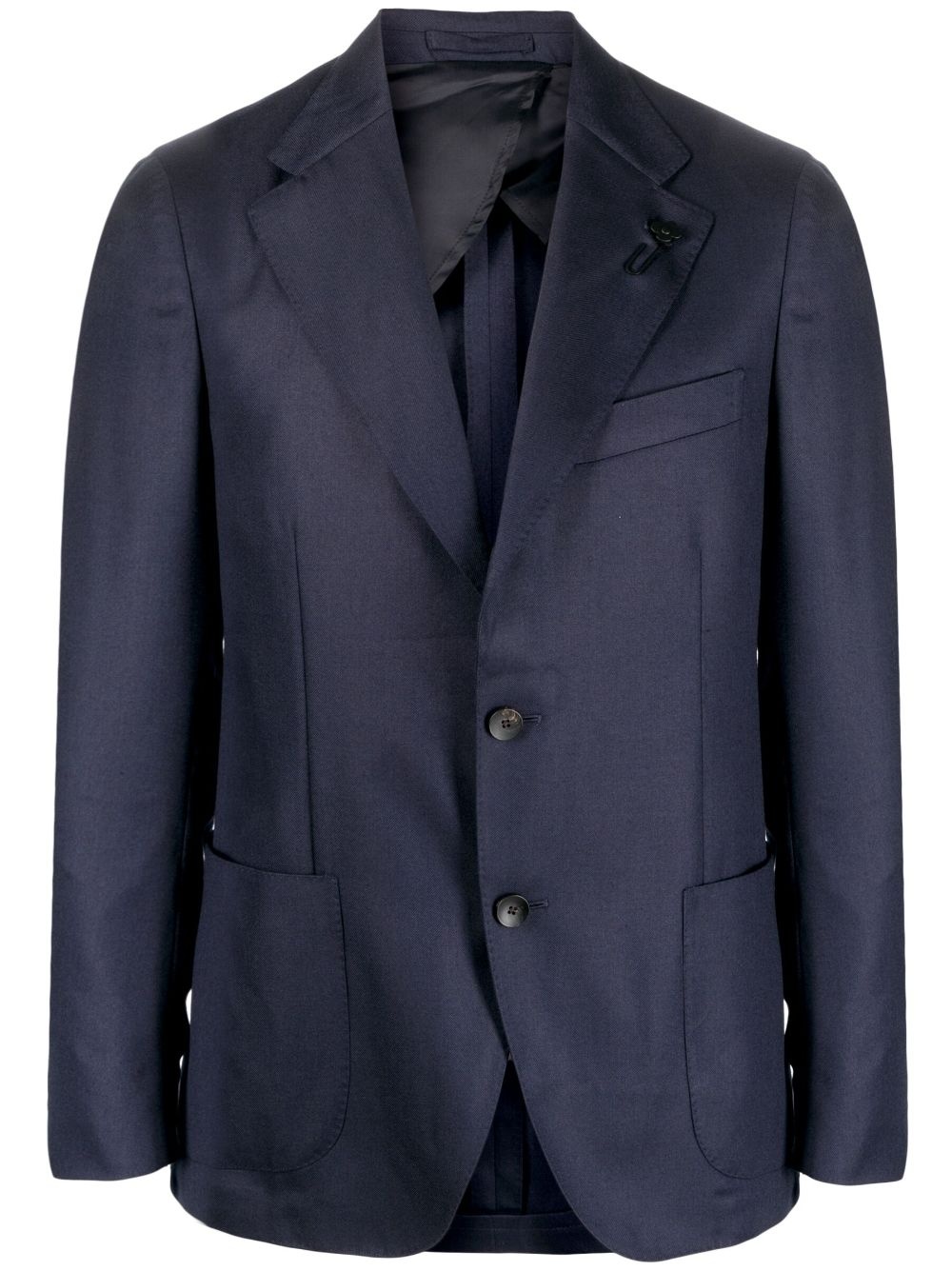 brooch-detail single-breasted blazer Highlights - Navy blue - Brooch detail - Notched lapels - Two front patch pockets - Chest welt pocket - Long sleeves - Buttoned cuffs - Straight hem Made in Italy Composition Polyester 100%, Cashmere 35%, Wool 35%, Silk 30% SIZE & FIT Model measurements Height 6 ft 2 in(1.87 m) Bust/Chest 38.18 in(97 cm) Hips 36.61 in(93 cm) Waist 29.13 in(74 cm) FittingInformation Designed for a slim fit, offering a comfortable fit that sits just away from the body The vented hem offers movement at the rear Made from a midweight non-stretch fabric This piece fits true to size – take your usual size Washing instructions Dry Clean Only