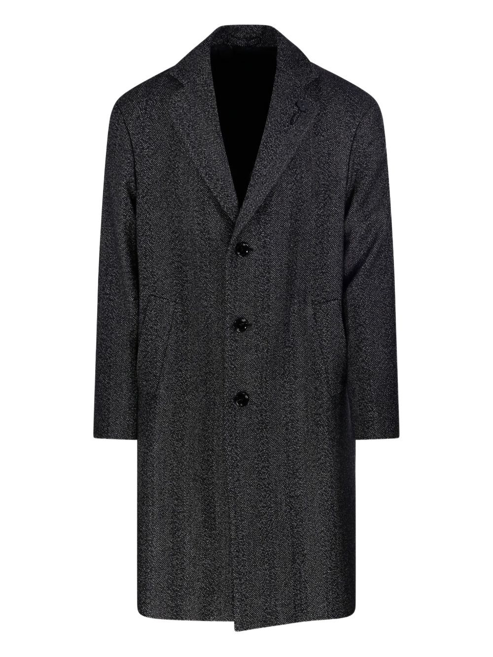 button-fastening herringbone coat Highlights - Black - Herringbone pattern - Button fastening - Notched lapel - Welt pockets - Long sleeves Made in Italy Composition Fabric 100% Washing instructions Read Manufacturer Guidelines