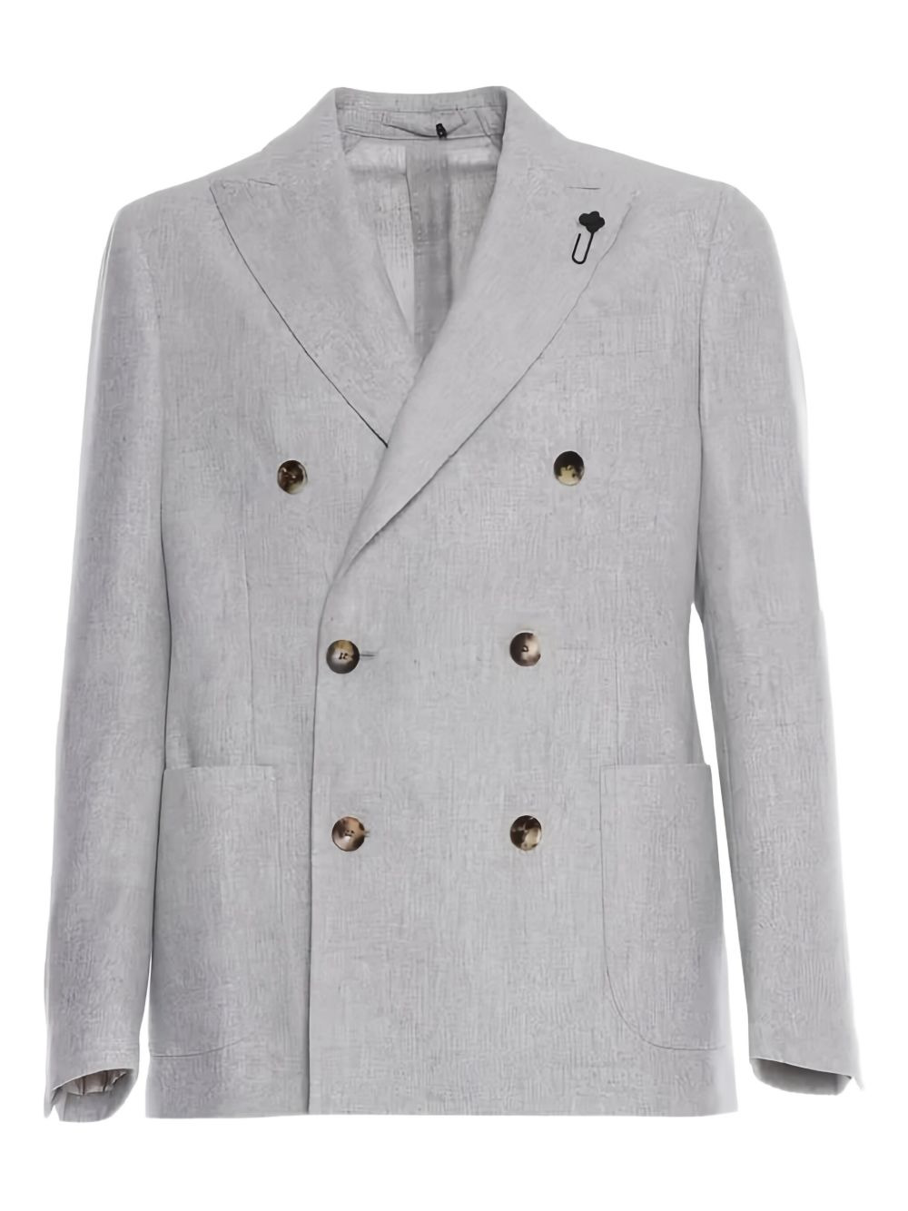 cashmere-blend blazer Highlights - Light grey - Double-breasted closure - Patch pockets - Peak lapels Made in Italy Composition Wool 90%, Cashmere 10% Washing instructions Read Manufacturer Guidelines