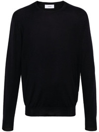 crew-neck long-sleeve jumper Highlights - Navy blue - Wool-silk-cashmere blend - Crew neck - Long sleeves - Ribbed cuffs and hem - Straight hem Made in Italy Composition Wool 75%, Silk 20%, Cashmere 5% SIZE & FIT Model measurements Height 6 ft 2 in(1.88 m) Bust/Chest 36.61 in(93 cm) Hips 35.82 in(91 cm) Waist 27.95 in(71 cm) FittingInformation Designed for a slim fit, offering a comfortable fit that sits just away from the body Made with a midweight knit, this piece offers some stretch This piece fits true to size – take your usual size