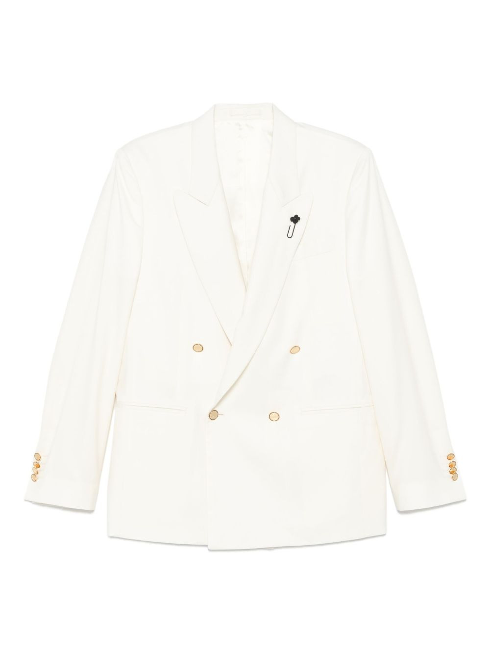 double-breasted blazer Highlights - Off-white - Double-breasted closure - Gold-tone buttons - Peak lapels - Long sleeves - Buttoned cuffs Made in Italy Composition Virgin Wool 100%, Viscose 52%, Cupro 48% SIZE & FIT Model measurements Height 6 ft 1 in(1.85 m) Bust/Chest 35.82 in(91 cm) Hips 37.79 in(96 cm) Waist 29.13 in(74 cm) Washing instructions Dry Clean Only
