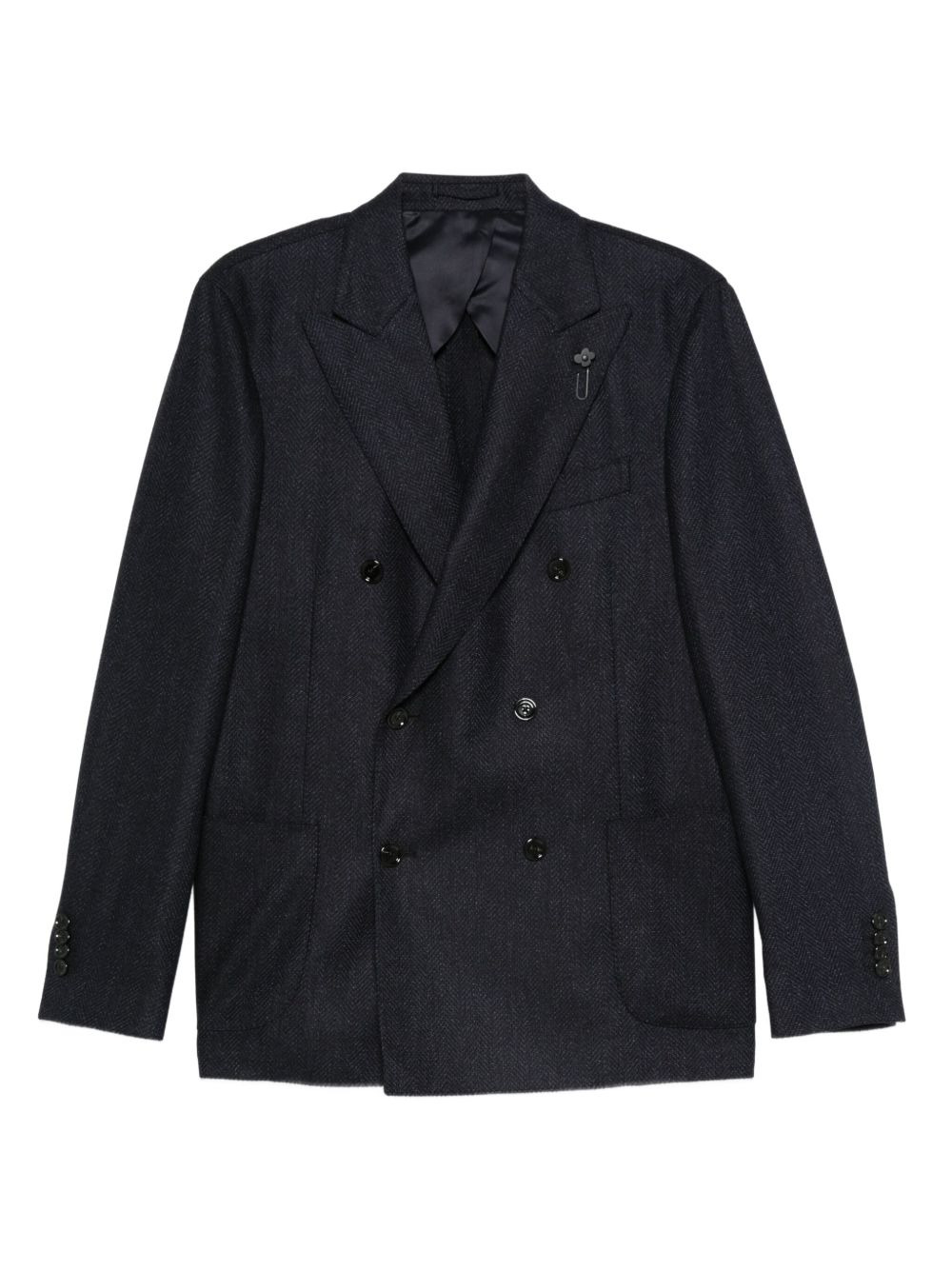 double-breasted blazer Highlights - Dark blue - Herringbone weave - Double-breasted closure - Peak lapels - Buttoned cuffs Made in Italy Composition Virgin Wool 92%, Cashmere 8% SIZE & FIT Model measurements Height 6 ft 0 in(1.84 m) Bust/Chest 35.82 in(91 cm) Hips 37 in(94 cm) Waist 28.34 in(72 cm) Washing instructions Read Manufacturer Guidelines