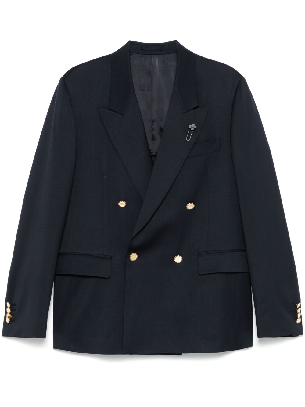 double-breasted blazer Highlights - Prussian blue - Front button fastening - Internal pocket - English rear vents - Chest welt pocket Made in Italy Composition Lining: Viscose 52%, Cupro 48% Outer: Virgin Wool 100% SIZE & FIT Model measurements Height 6 ft 1 in(1.85 m) Bust/Chest 35.82 in(91 cm) Hips 37.79 in(96 cm) Waist 29.13 in(74 cm) FittingInformation Designed for a slim fit, offering a comfortable fit that sits just away from the body The vented hem offers movement at the rear Made from a midweight non-stretch fabric