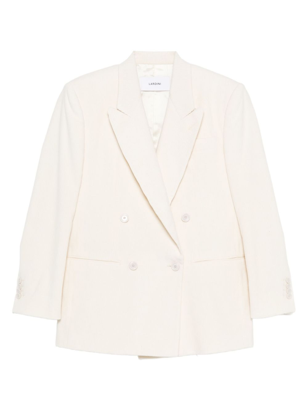 double-breasted corduroy blazer Highlights - White - Corduroy texture - Double-breasted button fastening - Notched lapels - Long sleeves Made in Italy Composition Cotton 90%, Cashmere 10% SIZE & FIT Model measurements Height 5 ft 11 in(1.8 m) Bust/Chest 31.49 in(80 cm) Hips 36.61 in(93 cm) Waist 24.4 in(62 cm) Washing instructions Read Manufacturer Guidelines
