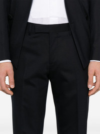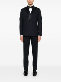 double-breasted suit Highlights - Prussian blue - Front button fastening - Concealed front button, hook and zip fastening - Internal pocket - English rear vents Made in Italy Composition Outer: Wool 98%, Elastane 2% Lining: Viscose 52%, Cupro 48% SIZE & FIT Model measurements Height 6 ft 1 in(1.85 m) Bust/Chest 35.82 in(91 cm) Hips 37.79 in(96 cm) Waist 29.13 in(74 cm) FittingInformation Tailored for a slim fit, offering a comfortable fit that sits just away from the body The unfinished hems allow for the length to be altered Made from a midweight fabric