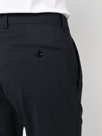 double-breasted wool suit navy blue stretch-wool Jacket: floral detail logo patch at the sleeve peak lapels double-breasted button fastening long sleeves buttoned cuffs chest welt pocket two front welt pockets English rear vents Trousers: straight leg concealed front fastening belt loops two side slit pockets two rear button-fastening pockets pressed crease Made in Italy Composition Cupro 100%, Wool 97%, Elastane 3% SIZE & FIT Model measurements Height 6 ft 1 in(1.85 m) Bust/Chest 35.82 in(91 cm) Hips 37.79 in(96 cm) Waist 29.13 in(74 cm)
