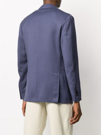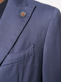 fine knit buttoned blazer Light blue wool blend fine knit buttoned blazer from Lardini featuring classic lapels, long sleeves, front pockets and a straight hem. Made in Italy Composition Outer: Wool 95%, Silk 5% Lining: Polyester 100% SIZE & FIT Model measurements Height 6 ft 2 in(1.88 m) Bust/Chest 36.61 in(93 cm) Hips 35.82 in(91 cm) Waist 27.95 in(71 cm) FittingInformation This piece fits true to size. We recommend you get your regular size Cut for a slim fit Made with a mid-weight non-stretch fabric Washing instructions Dry Clean Only