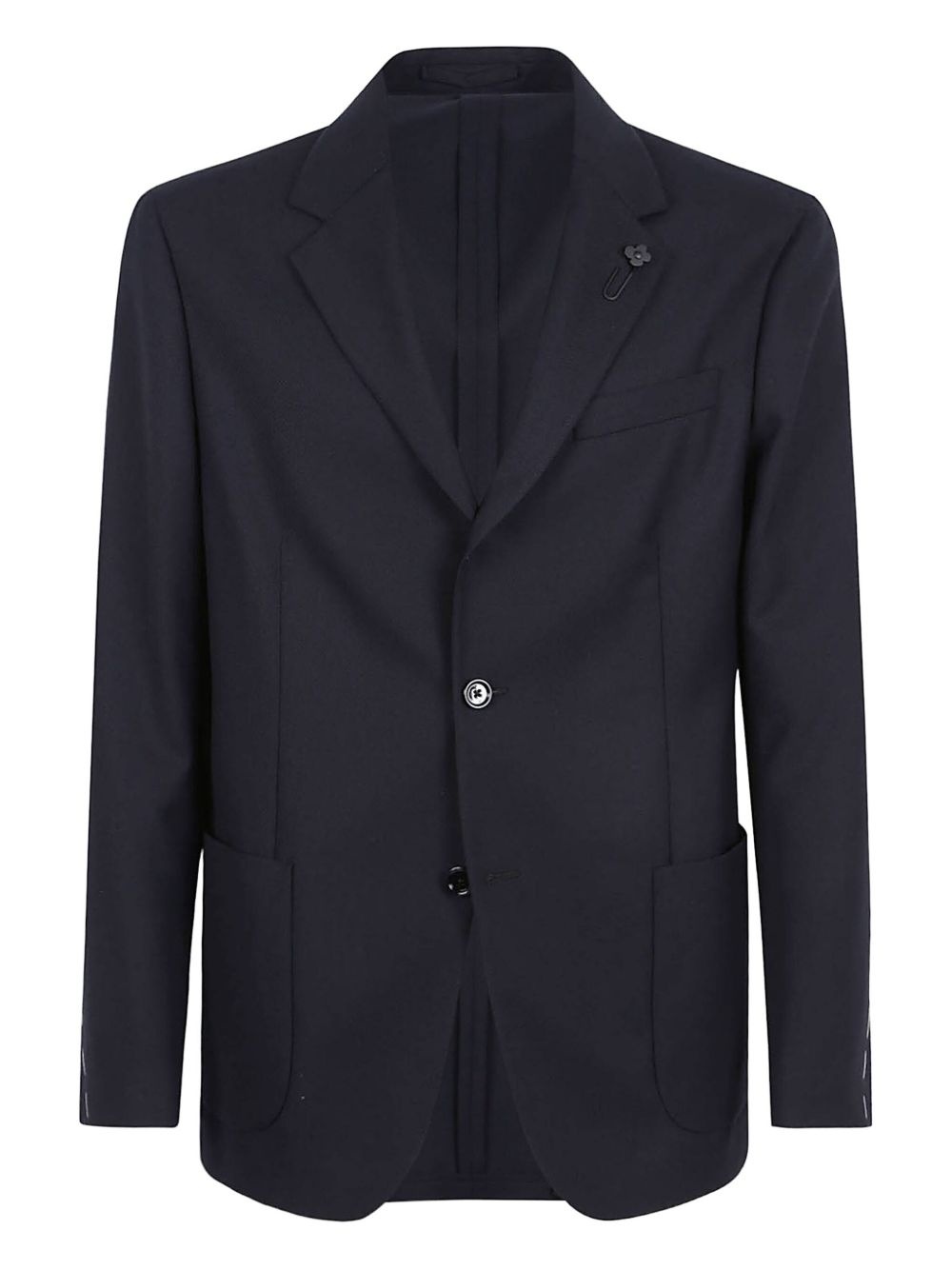 flower clip-detail wool blazer Highlights - Blue - Wool - Patch pockets - Single-breasted - Two-button fastening - Notched lapel - Welt breast pocket - Flower-clip detail Made in Italy Composition Wool 100% Washing instructions Read Manufacturer Guidelines