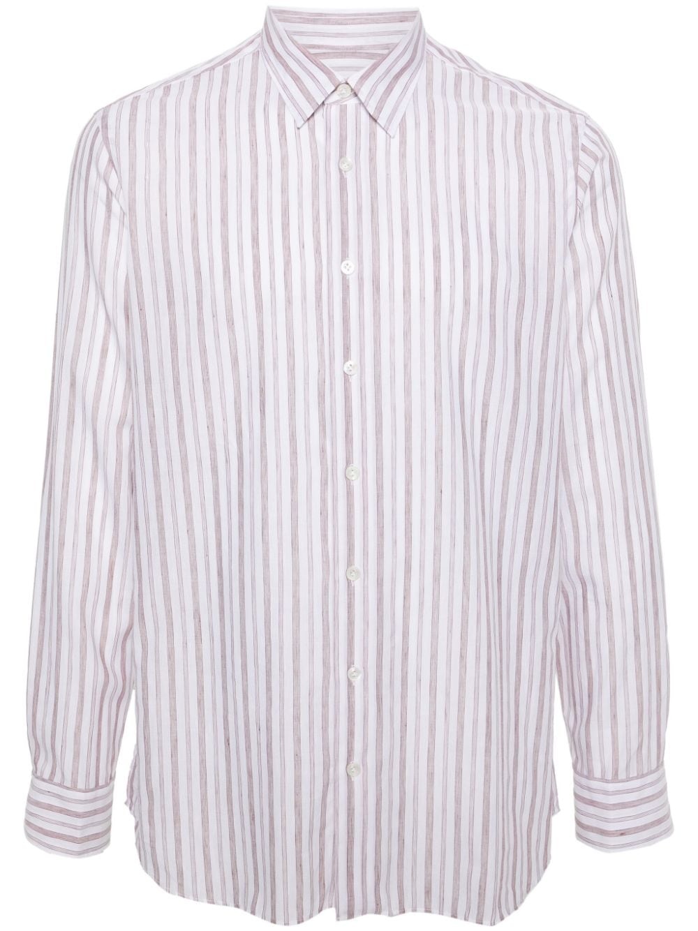 halo-stripe classic-collar shirt Highlights - White/mauve - Cotton-linen blend - Halo stripe pattern - Classic collar - Front button fastening - Long sleeves - Buttoned cuffs - Curved hem Made in Italy Composition Cotton 58%, Linen/Flax 42% SIZE & FIT Model measurements Height 6 ft 2 in(1.87 m) Bust/Chest 36.41 in(92.5 cm) Hips 35.43 in(90 cm) Waist 29.52 in(75 cm) FittingInformation Designed for a relaxed fit, this piece allows for comfort and movement when worn Made from a midweight non-stretch fabric This piece fits true to size – take your usual size Washing instructions Machine Wash