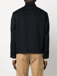 high-neck wool jacket Highlights - Midnight blue - Wool - High neck - Front button and zip fastening - Long sleeves - Buttoned cuffs - Two side button-fastening pockets - Straight hem Made in Italy Composition Outer: Wool 100% Lining: Viscose 52%, Cupro 48% SIZE & FIT Model measurements Height 6 ft 2 in(1.87 m) Bust/Chest 36.61 in(93 cm) Hips 35.03 in(89 cm) Waist 27.95 in(71 cm) FittingInformation Designed for a regular fit, allowing for a comfortably loose fit throughout the body Made from a midweight non-stretch fabric This piece fits true to size – take your usual size Washing instructions Dry Clean Only