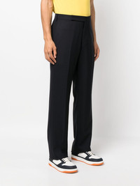 high-waisted wool trousers Highlights - Blue - High-waisted - Belt loops - Off-centre front button fastening - Two rear welt pockets - Straight leg Made in Italy Composition Outer: Wool 100% Lining: Polyester 65%, Cotton 35% SIZE & FIT Model measurements Height 6 ft 2 in(1.87 m) Bust/Chest 38.18 in(97 cm) Hips 36.61 in(93 cm) Waist 29.13 in(74 cm) FittingInformation Designed for a straight-leg, allowing for an unrestricted and comfortable fit over the leg The unfinished hems allow for the length to be altered This piece fits true to size – take your usual size