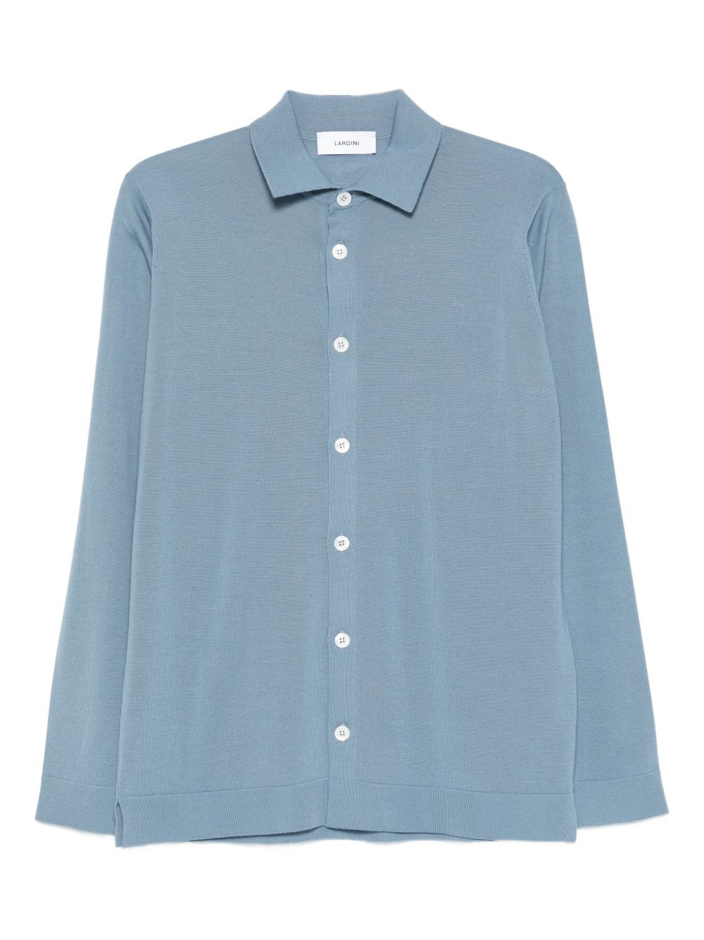 long-sleeve button-up shirt Highlights - Blue - Long sleeves - Button fastening - Polo collar - Straight hem Made in Italy Composition Virgin Wool 100% SIZE & FIT Model measurements Height 6 ft 0 in(1.84 m) Bust/Chest 37.79 in(96 cm) Hips 37 in(94 cm) Waist 31.49 in(80 cm) Washing instructions Machine Wash
