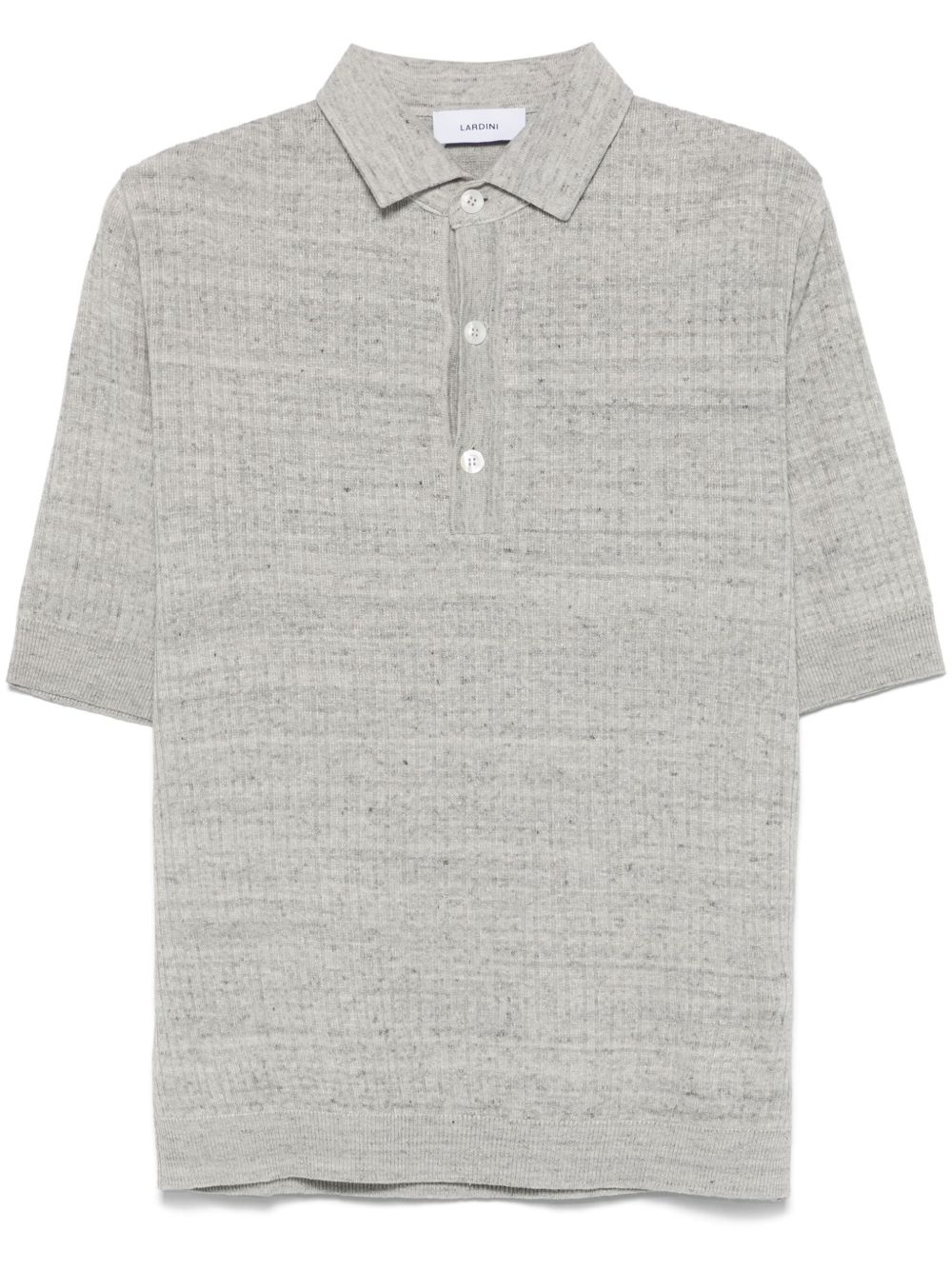 melange polo shirt Highlights - Heather grey - Short front button fastening - Ribbed cuffs and hem - Polo collar - Short sleeves Made in Italy Composition Linen/Flax 73%, Cotton 27% SIZE & FIT Model measurements Height 6 ft 2 in(1.87 m) Bust/Chest 37.79 in(96 cm) Hips 37.79 in(96 cm) Waist 30.31 in(77 cm) FittingInformation Designed for a regular fit, this polo shirt offers a comfortable loose fit throughout the body The ribbed hem offers a close, comfortable fit Made with a midweight knit, this piece offers some stretch