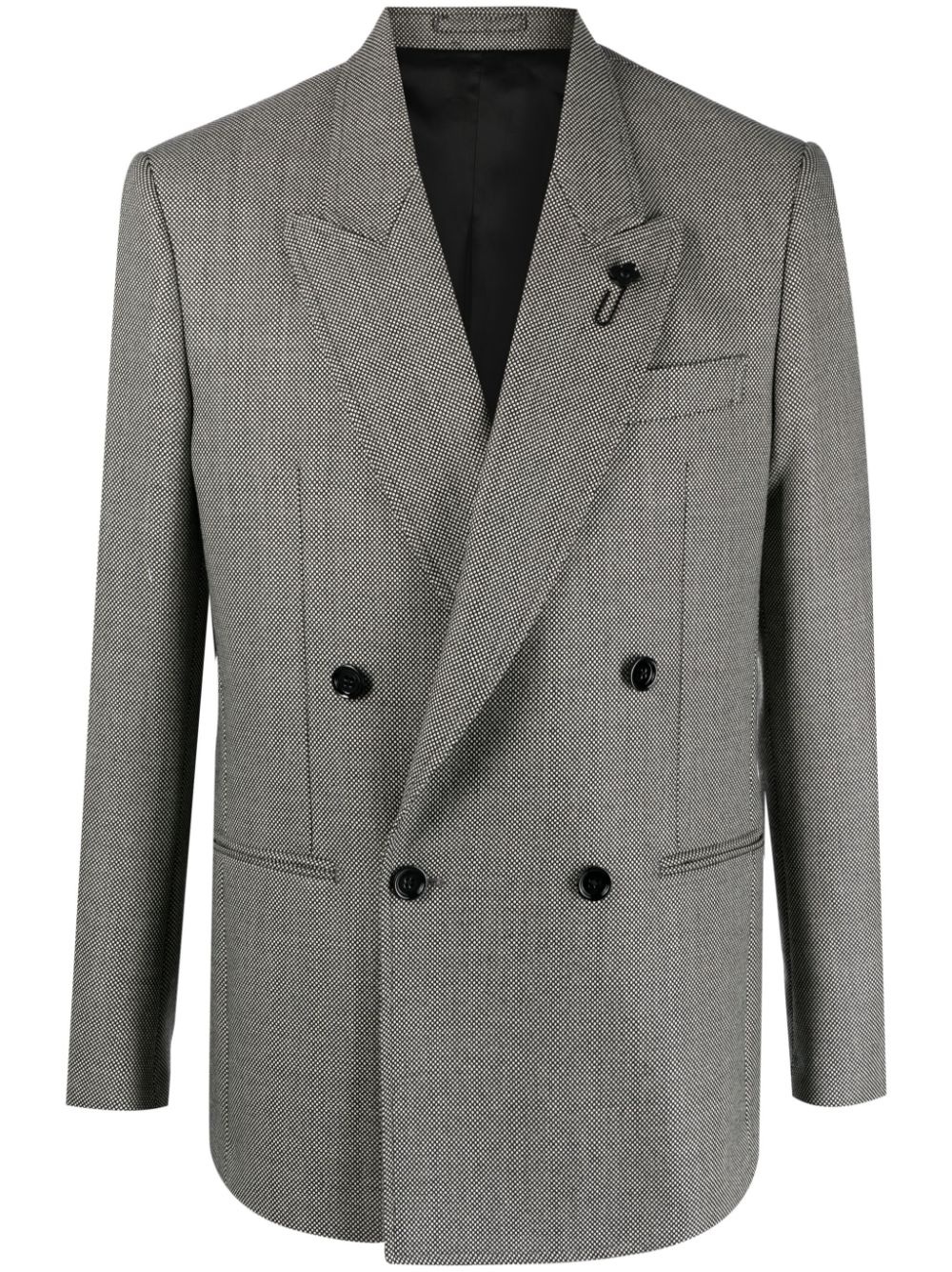 micro-dot double-breasted wool blazer Highlights - Black/white - Wool - Micro-dot print - Brooch detail - Peak lapels - Double-breasted button fastening - Long sleeves - Buttoned cuffs - Chest welt pocket - Two front jetted pockets - Italian rear vents - Straight hem Made in Italy Composition Lining: Viscose 52%, Cupro 48% Outer: Wool 100% SIZE & FIT Model measurements Height 6 ft 2 in(1.87 m) Bust/Chest 36.41 in(92.5 cm) Hips 35.43 in(90 cm) Waist 29.52 in(75 cm) FittingInformation Designed for a boxy fit, intended for a loose fit throughout The internal shoulder pads offer a structured shape Made from a midweight non-stretch fabric This piece fits true to size – take your usual size