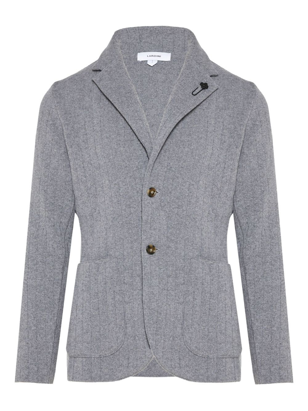 notch-collar ribbed cardigan Highlights - Grey - Ribbed texture - Front button fastening - Notched lapel - Front patch pockets - Pin detail Made in Italy Composition Virgin Wool 90%, Cashmere 10% Washing instructions Read Manufacturer Guidelines