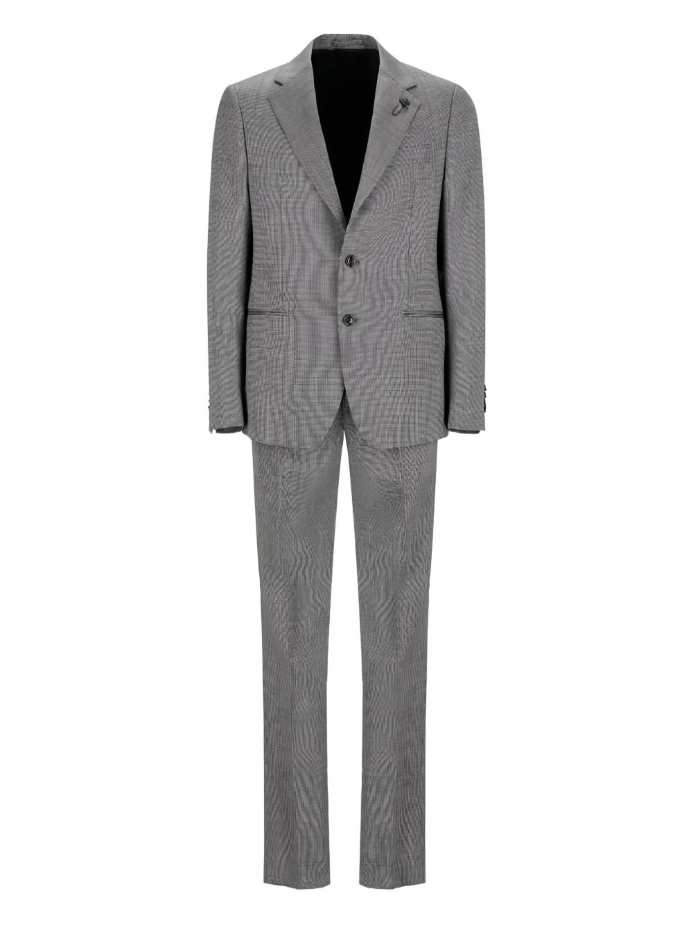 notched houndstooth suit Highlights - Grey - Houndstooth pattern - Two-button fastening - Notched lapel - Flap pockets - Straight trousers Imported Composition Wool 100% Washing instructions Read Manufacturer Guidelines
