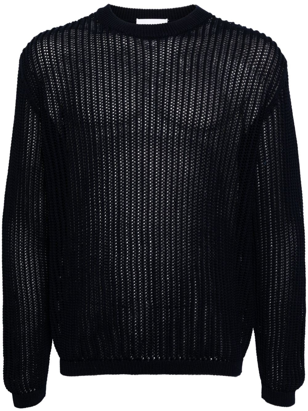 open-knit cotton jumper Highlights - Navy blue - Cotton - Open knit - Round neck - Long sleeves - Straight hem Made in Italy Composition Cotton 100% SIZE & FIT FittingInformation Designed for a relaxed fit, this piece allows for comfort and movement when worn Made with a midweight knit, this piece offers some stretch This piece fits true to size – take your usual size