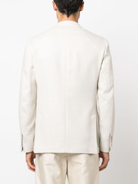 peak-lapel double-breasted blazer Highlights - Beige - Wool-silk blend - Brooch detail - Peak lapels - Double-breasted button fastening - Long sleeves - Buttoned cuffs - Jetted chest pocket - Straight hem Made in Italy Composition Outer: Wool 66%, Silk 32% Lining: Viscose 52%, Cupro 48% SIZE & FIT Model measurements Height 6 ft 1 in(1.86 m) Bust/Chest 37.4 in(95 cm) Hips 36.22 in(92 cm) Waist 29.52 in(75 cm) FittingInformation Designed for a regular fit, allowing for a comfortably loose fit throughout the body The vented hem offers movement at the rear Made from a midweight non-stretch fabric This piece fits true to size – take your usual size