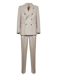 peak-lapel double-breasted suit Highlights - Light beige - Double-breasted - Button fastening - Lapel pin - Long sleeve Made in Italy Composition Virgin Wool 98%, Spandex/Elastane 2% Washing instructions Read Manufacturer Guidelines