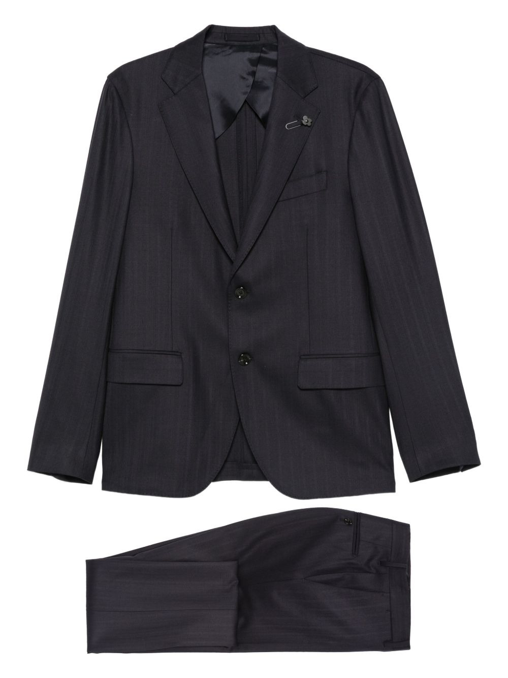 pinstripe cotton suit Highlights - Black - Pinstripe pattern - Two-button fastening - Notched lapel - Flap pockets - Straight trousers Made in Italy Composition Lining: Cotton 100%, Viscose 52%, Cupro 48% Outer: Virgin Wool 95%, Elastane 5% SIZE & FIT Model measurements Height 6 ft 2 in(1.87 m) Bust/Chest 36.41 in(92.5 cm) Hips 37 in(94 cm) Waist 29.52 in(75 cm) Washing instructions Dry Clean Only