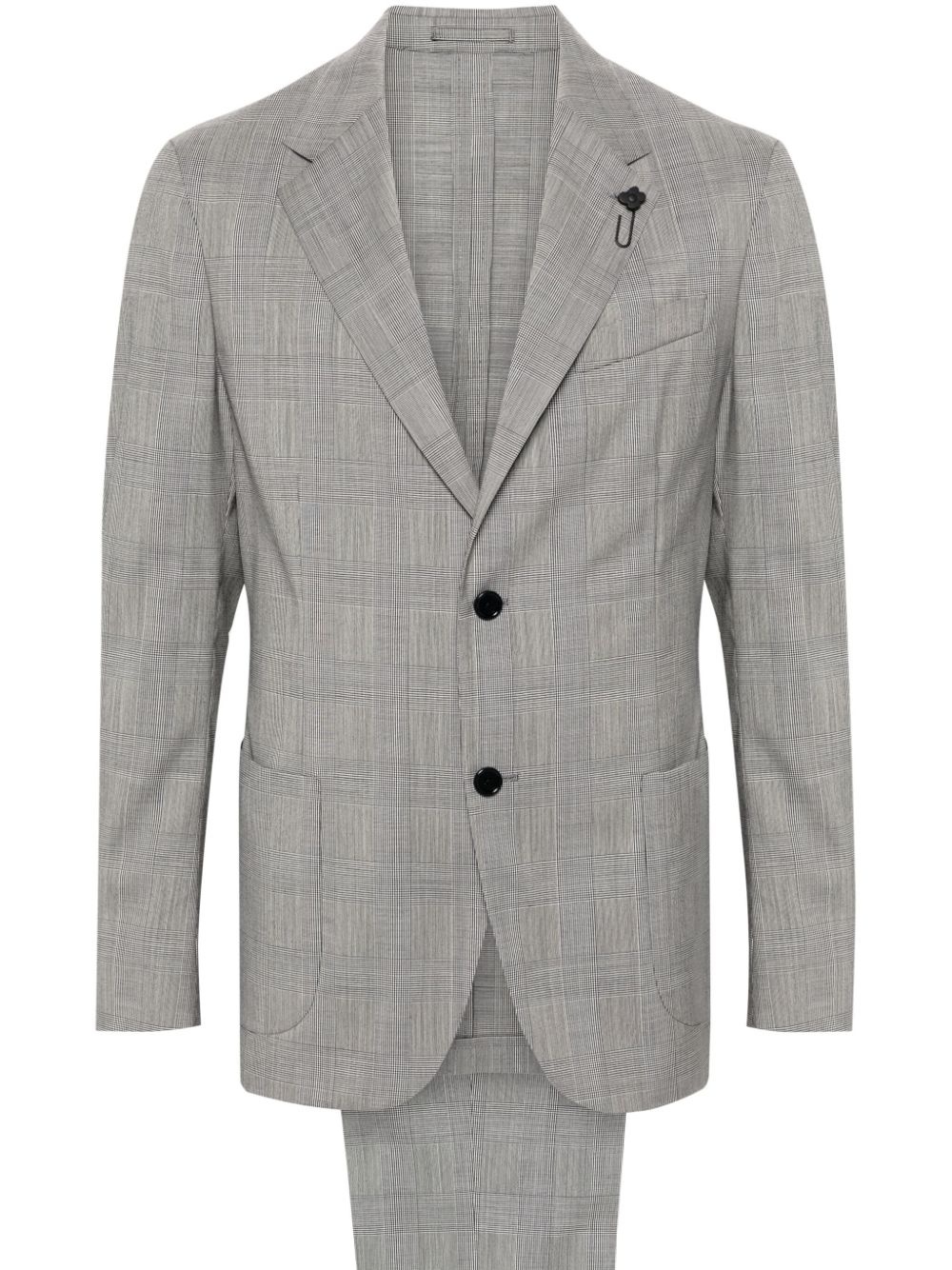 Prince-of-Wales-check wool suit Highlights - Black/white - Wool - Prince of wales check pattern - Dart detailing - Jacket: - Brooch detail - Notched lapels - Long sleeves - Faux-buttoned cuffs - English rear vents - Chest welt pocket - Two front patch pockets - Two internal patch pockets - Front button fastening - Curved hem - Partial lining - Trousers: - Pressed crease - Mid-rise - Tailored cut - Two front welt pockets - Two rear welt pockets - Elasticated drawstring waistband - Concealed front button, hook and zip fastening - Unlined Made in Italy Composition Lining: Viscose 52%, Cupro 48% Outer: Wool 100% SIZE & FIT Model measurements Height 6 ft 1 in(1.86 m) Bust/Chest 36.61 in(93 cm) Hips 37 in(94 cm) Waist 28.74 in(73 cm) FittingInformation Tailored for a slim fit, offering a comfortable fit that sits just away from the body The unfinished hems allow for the length to be altered Made from a midweight fabric This piece fits true to size – take your usual size Washing instructions Dry Clean Only