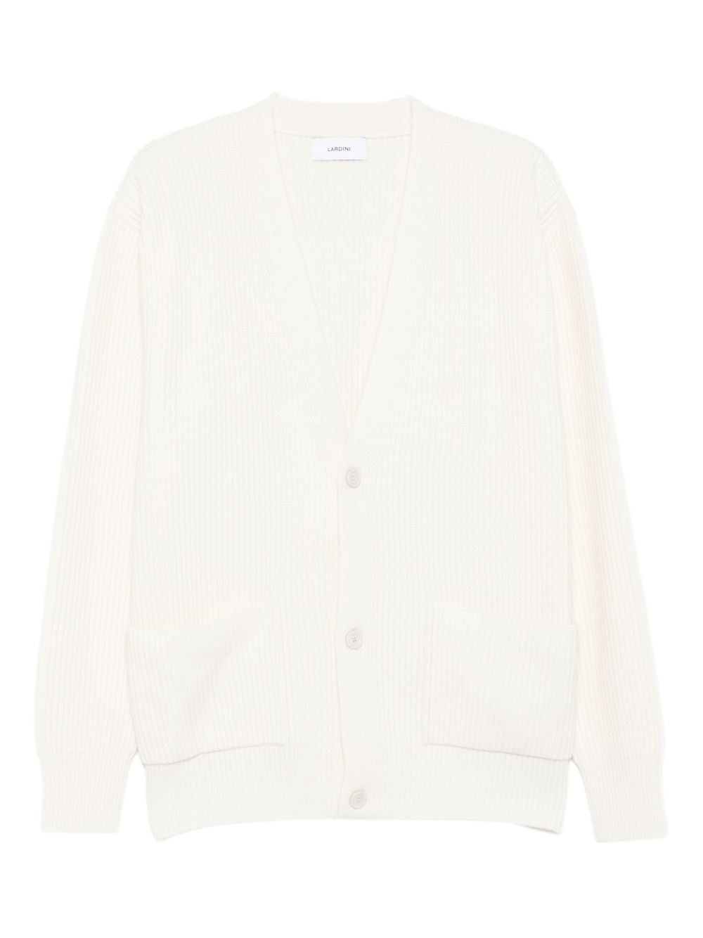 ribbed buttoned-front cardigan Highlights - Off-white - Ribbed knit - Button front - Patch pockets - Long sleeves - V-neck Made in Italy Composition Virgin Wool 90%, Cashmere 10% Washing instructions Machine Wash
