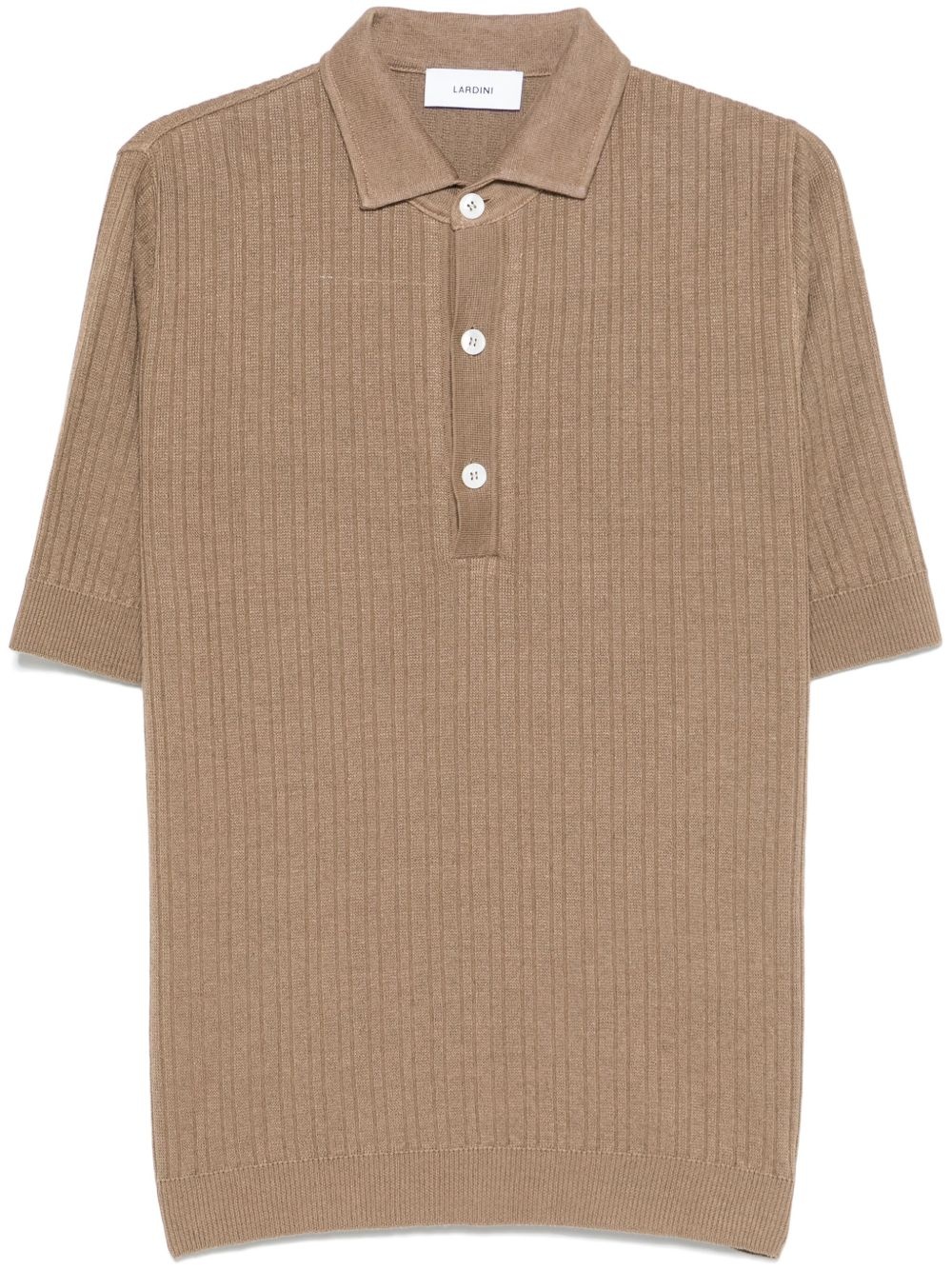 ribbed polo shirt Highlights - Light brown - Short front button fastening - Short sleeves - Ribbed cuffs and hem Made in Italy Composition Linen/Flax 73%, Cotton 27% SIZE & FIT Model measurements Height 6 ft 2 in(1.87 m) Bust/Chest 37.79 in(96 cm) Hips 37.79 in(96 cm) Waist 30.31 in(77 cm) FittingInformation Designed for a regular fit, this polo shirt offers a comfortable loose fit throughout the body The ribbed hem offers a close, comfortable fit Made with a midweight knit, this piece offers some stretch