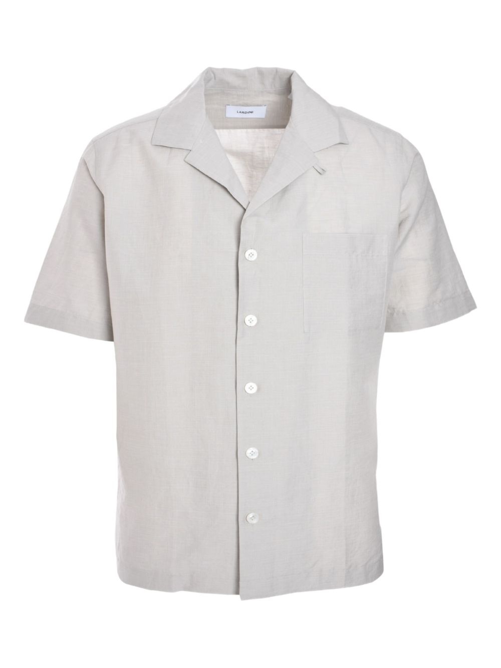 short-sleeve button-up shirt Highlights - Light grey - Camp collar - Front pocket - Button fastening - Straight hem - Short sleeves Made in Italy Composition Flax 100%