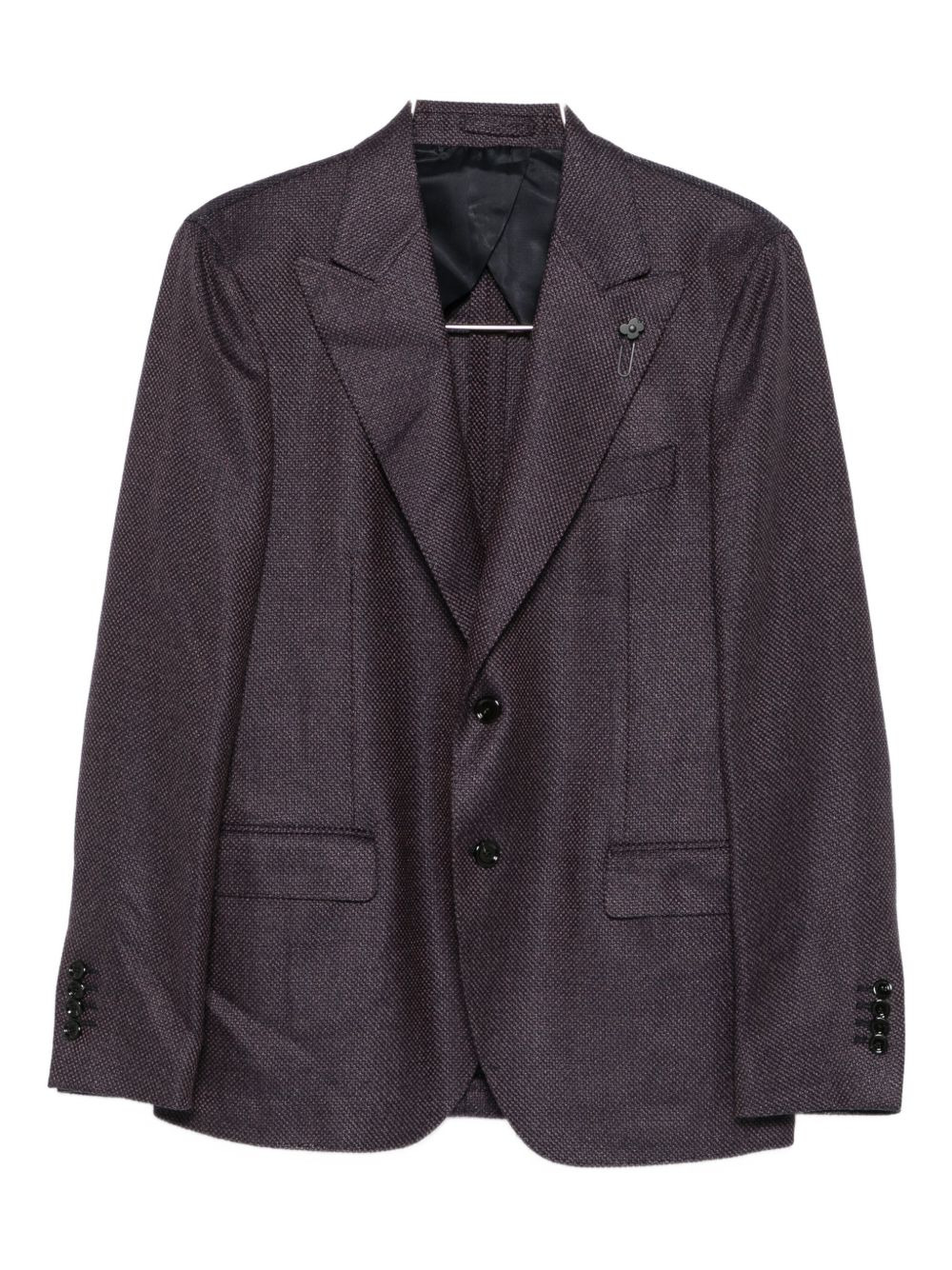 single-breasted blazer Highlights - Purple - Virgin wool blend - Notched lapels - Long sleeves - Front button fastening - Front flap pockets - Buttoned cuffs Made in Italy Composition Virgin Wool 89%, Silk 7%, Cashmere 4% Washing instructions Read Manufacturer Guidelines