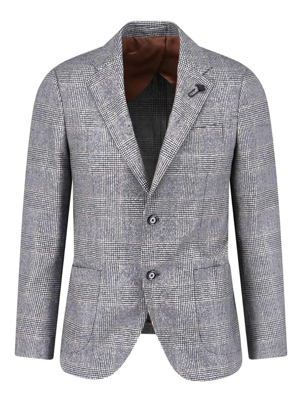 single-breasted blazer Highlights - Grey - Plaid pattern - Button fastening - Peak lapels Imported Composition Wool 42%, Polyester 35%, Cotton 23% Washing instructions Read Manufacturer Guidelines