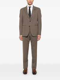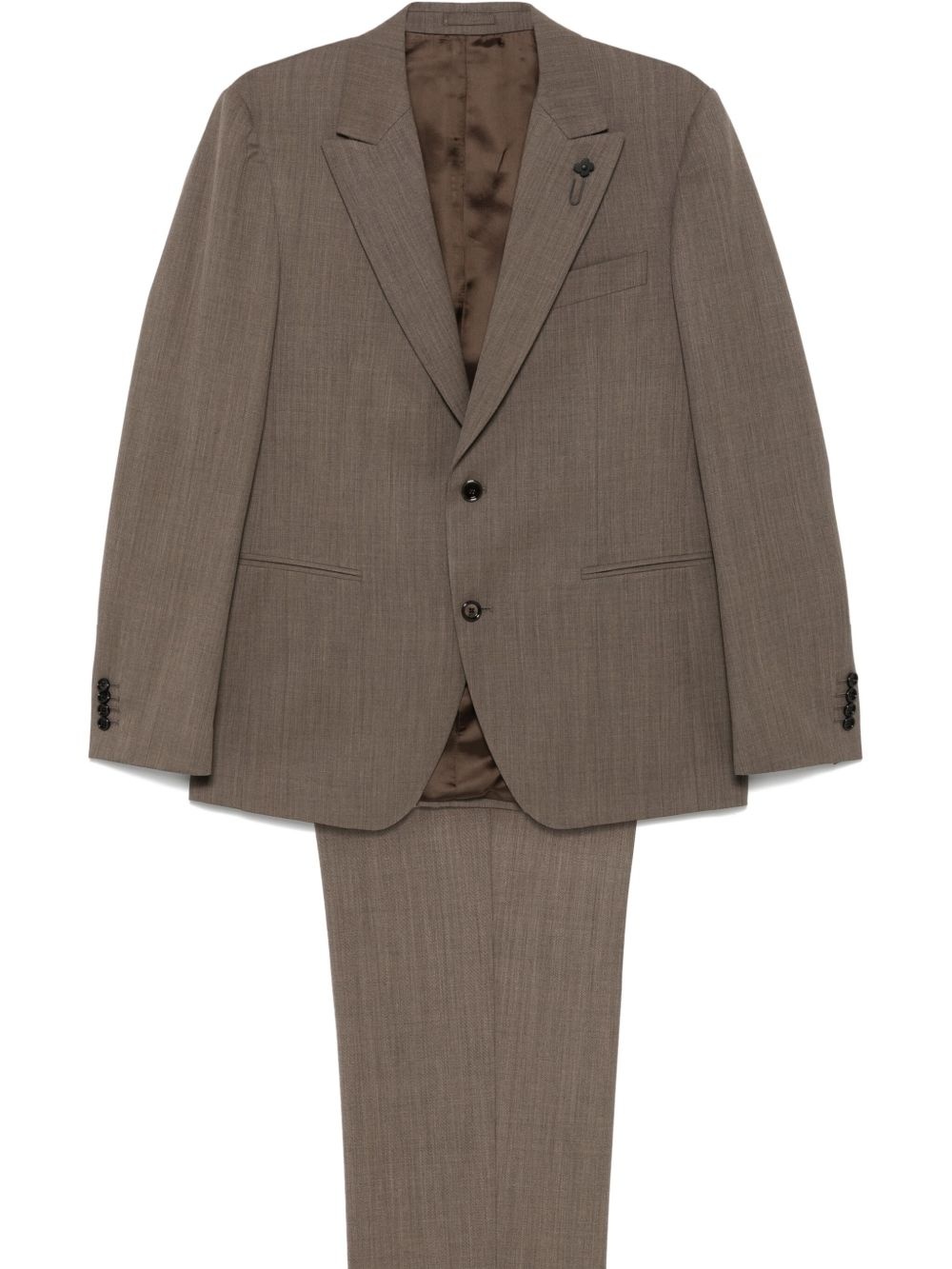 single-breasted suit Highlights - Light brown - Virgin wool blend - Front button fastening - Set of two Made in Italy Composition Outer: Virgin Wool 97%, Elastane 3% Lining: Viscose 52%, Cupro 48% SIZE & FIT Model measurements Height 6 ft 1 in(1.85 m) Bust/Chest 35.82 in(91 cm) Hips 37.79 in(96 cm) Waist 29.13 in(74 cm) FittingInformation Tailored for a slim fit, offering a comfortable fit that sits just away from the body The unfinished hems allow for the length to be altered Made from a midweight fabric