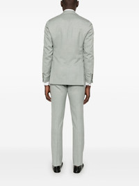 single-breasted suit Highlights - Cambridge blue - Front button fastening - Front button and zip fastening - Chest welt pocket - Two front flap pockets Made in Italy Composition Outer: Virgin Wool 49%, Silk 38%, Linen/Flax 13% Lining: Viscose 52%, Cupro 48% SIZE & FIT Model measurements Height 6 ft 0 in(1.84 m) Bust/Chest 37.79 in(96 cm) Hips 37 in(94 cm) Waist 31.49 in(80 cm) FittingInformation Tailored for a slim fit, offering a comfortable fit that sits just away from the body The unfinished hems allow for the length to be altered Made from a midweight non-stretch fabric Washing instructions Dry Clean Only