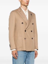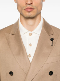 Special blazer Highlights - Beige - Twill weave - Brooch detail - Dart detailing - Peak lapels - Double-breasted button fastening - Long sleeves - Faux buttoned cuffs - Chest welt pocket - Two side patch pockets - English rear vents - Partial lining - Straight hem Made in Italy Composition Outer: Virgin Wool 35%, Cashmere 35%, Silk 30% Lining: Viscose 52%, Cupro 48% SIZE & FIT Model measurements Height 6 ft 1 in(1.86 m) Bust/Chest 37.4 in(95 cm) Hips 36.22 in(92 cm) Waist 29.52 in(75 cm) FittingInformation Designed for a slim fit, offering a comfortable fit that sits just away from the body The vented hem offers movement at the rear Made from a midweight non-stretch fabric This piece fits true to size – take your usual size