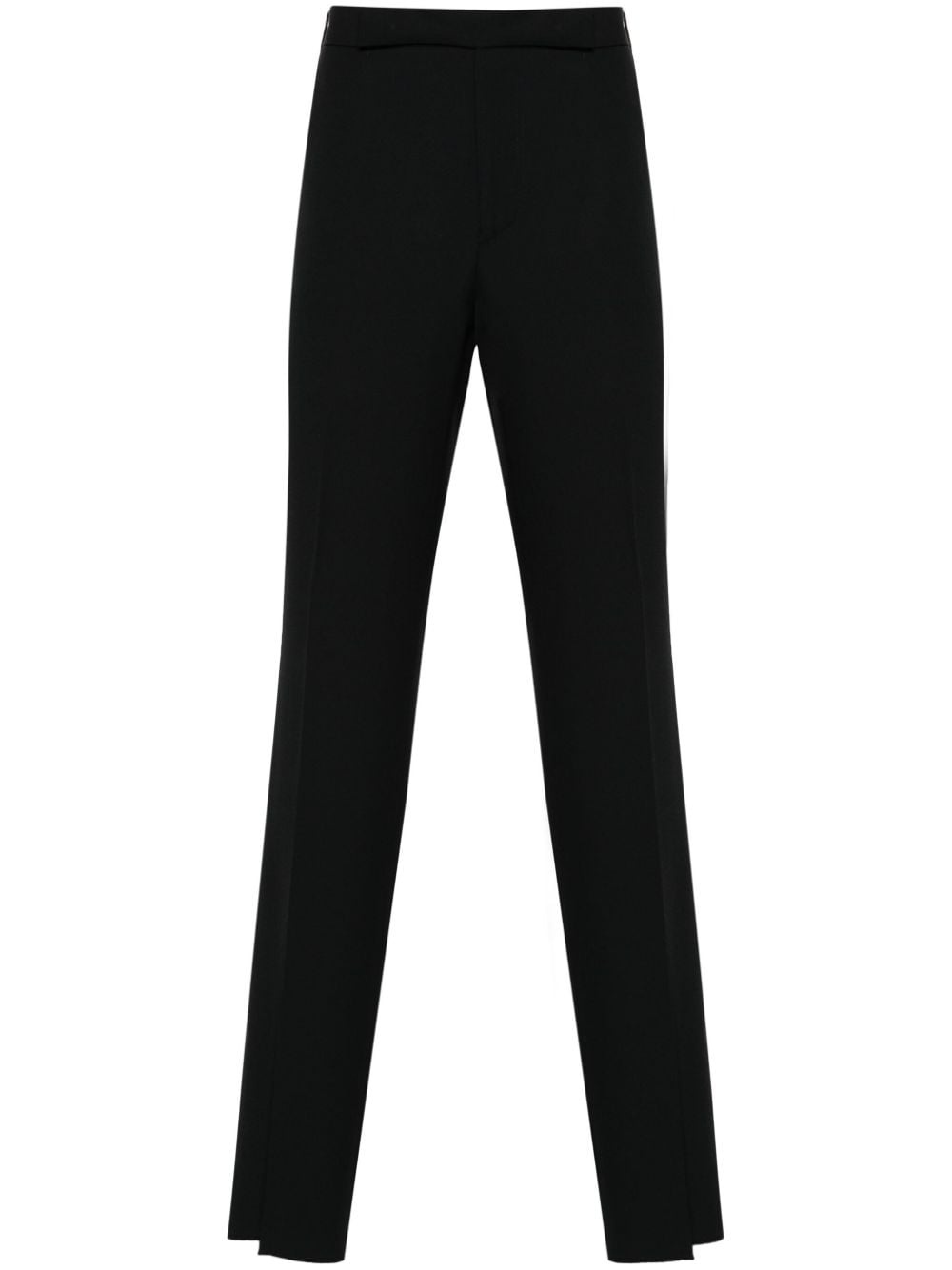 straight-leg trousers Highlights - Black - Wool-silk blend - Mid-rise - Concealed front fastening - Belt loops - Pressed crease - Slip pockets to the sides - Two rear welt pockets - Straight leg Made in Italy Composition Outer: Viscose 66%, Wool 24%, Silk 10% Lining: Polyester 65%, Cotton 35% SIZE & FIT Model measurements Height 6 ft 2 in(1.87 m) Bust/Chest 36.22 in(92 cm) Hips 37 in(94 cm) Waist 27.95 in(71 cm) FittingInformation Designed for a straight-leg, allowing for an unrestricted and comfortable fit over the leg The unfinished hems allow for the length to be altered Made from a midweight non-stretch fabric This piece fits true to size – take your usual size Washing instructions Dry Clean Only